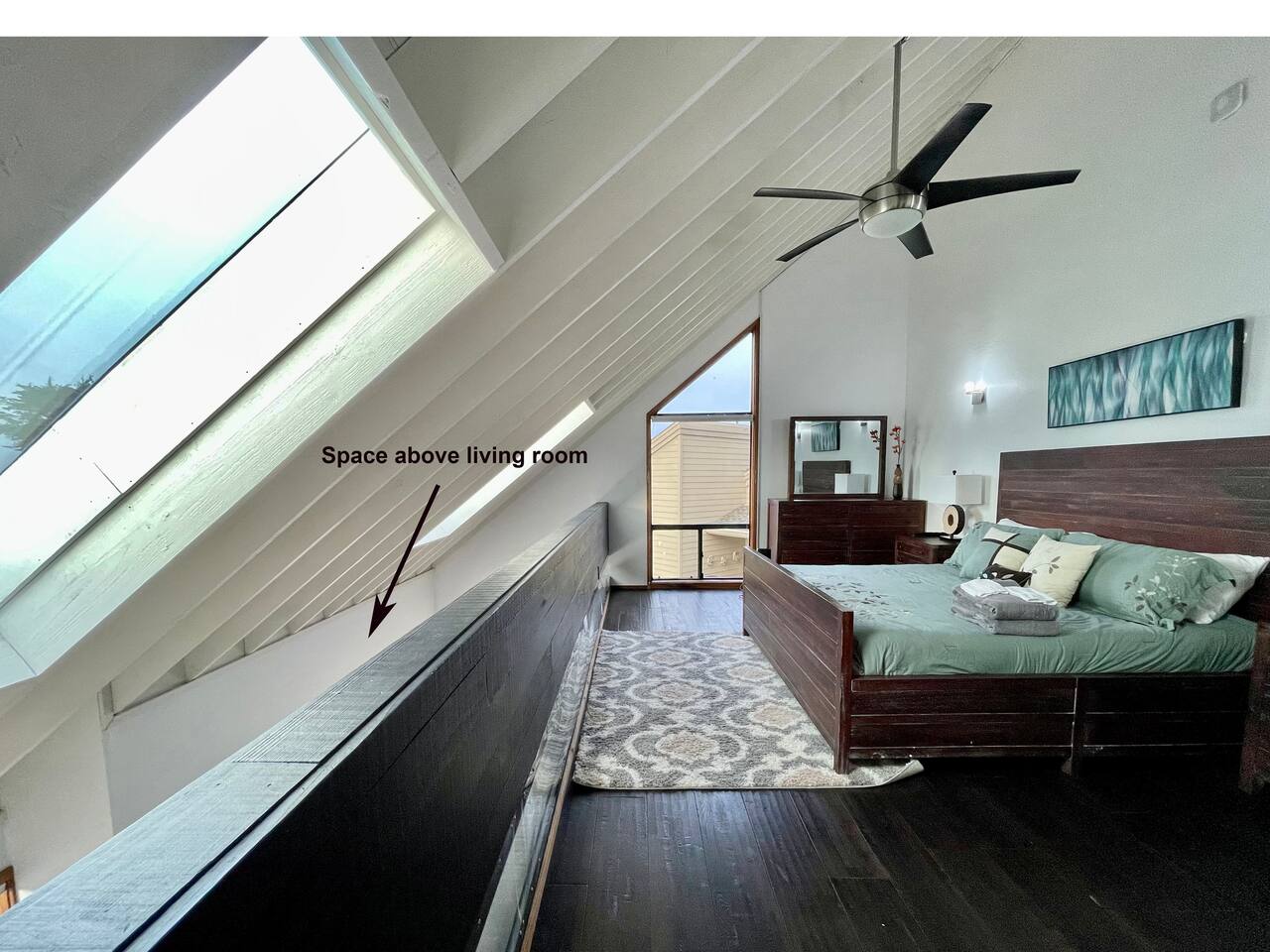 One twin bed at the loft and two queen sofa beds in the living room