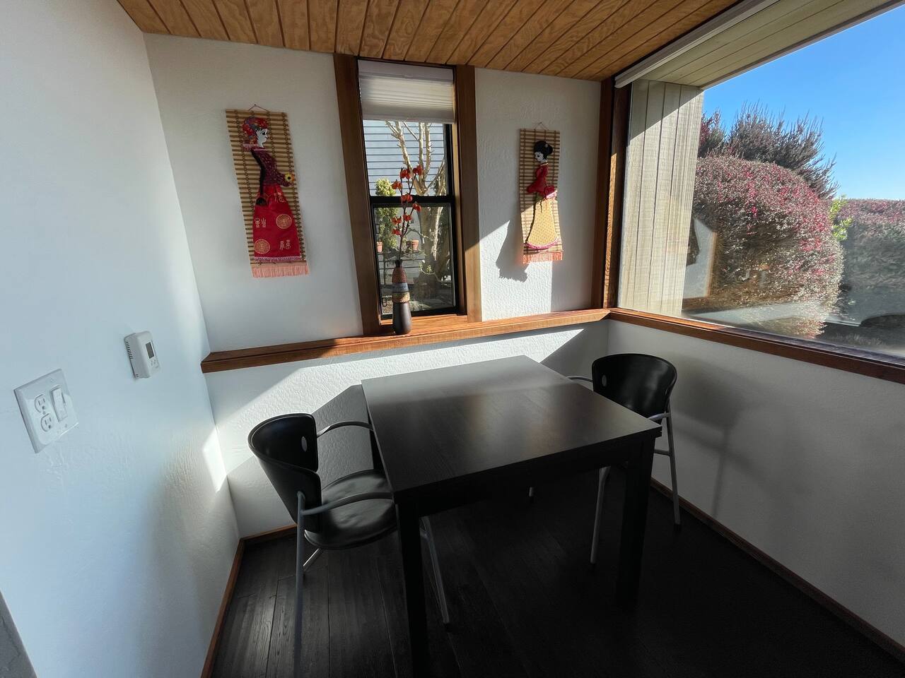 Kindly be aware that during extremely cold or hot weather, you may need to turn on the two air conditioners that are mounted on the walls: one in the living room and the other in the master bedroom. Please note that you cannot using one for cooling and the other for heating because both of them connecting to the same heat pump unit outside. Please note that we do not provide any consumable items. Please bring your own. Moreover, this residence is designed to accommodate only a couples with small children. As evident in the images, the house features a king-sized bed in the bedroom and a single bed in the loft, with additional sleeping options provided by the sofa beds in the living room. It's important to note that the bedroom has an open layout connected to the living room, which means it does not offer soundproofing, as illustrated in the accompanying picture.